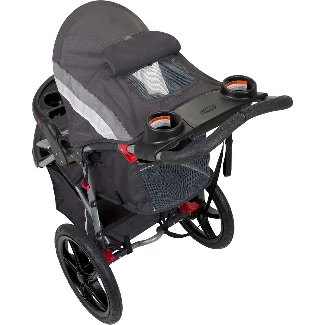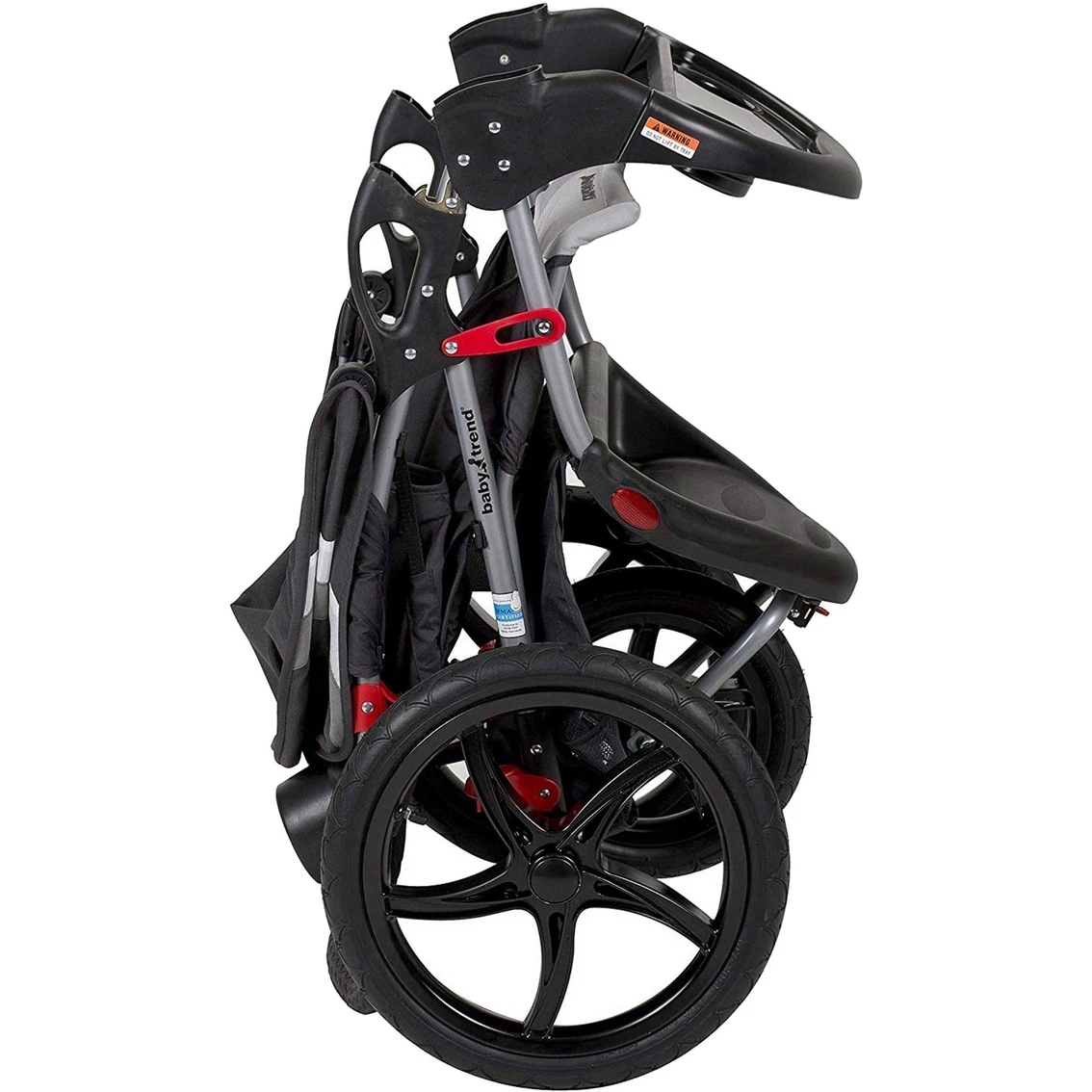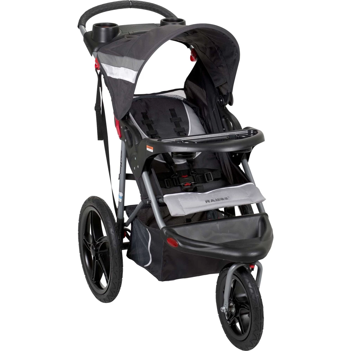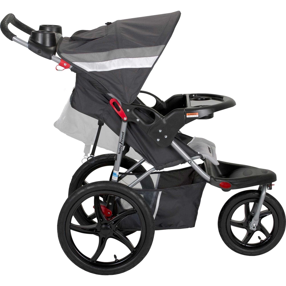 The Baby Trend Range Jogger combines all the comfort and convenient features for active families. With all terrain composite wheels this jogger provides excellent maneuverability and stability. A locking swivel wheel that allows you to lock the front wheel in place when jogging and unlock it for easy low speed strolling. Two deep cupholders and covered compartment are handy additions for parents.