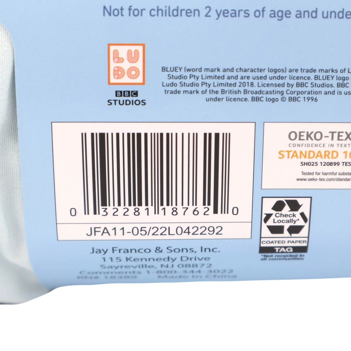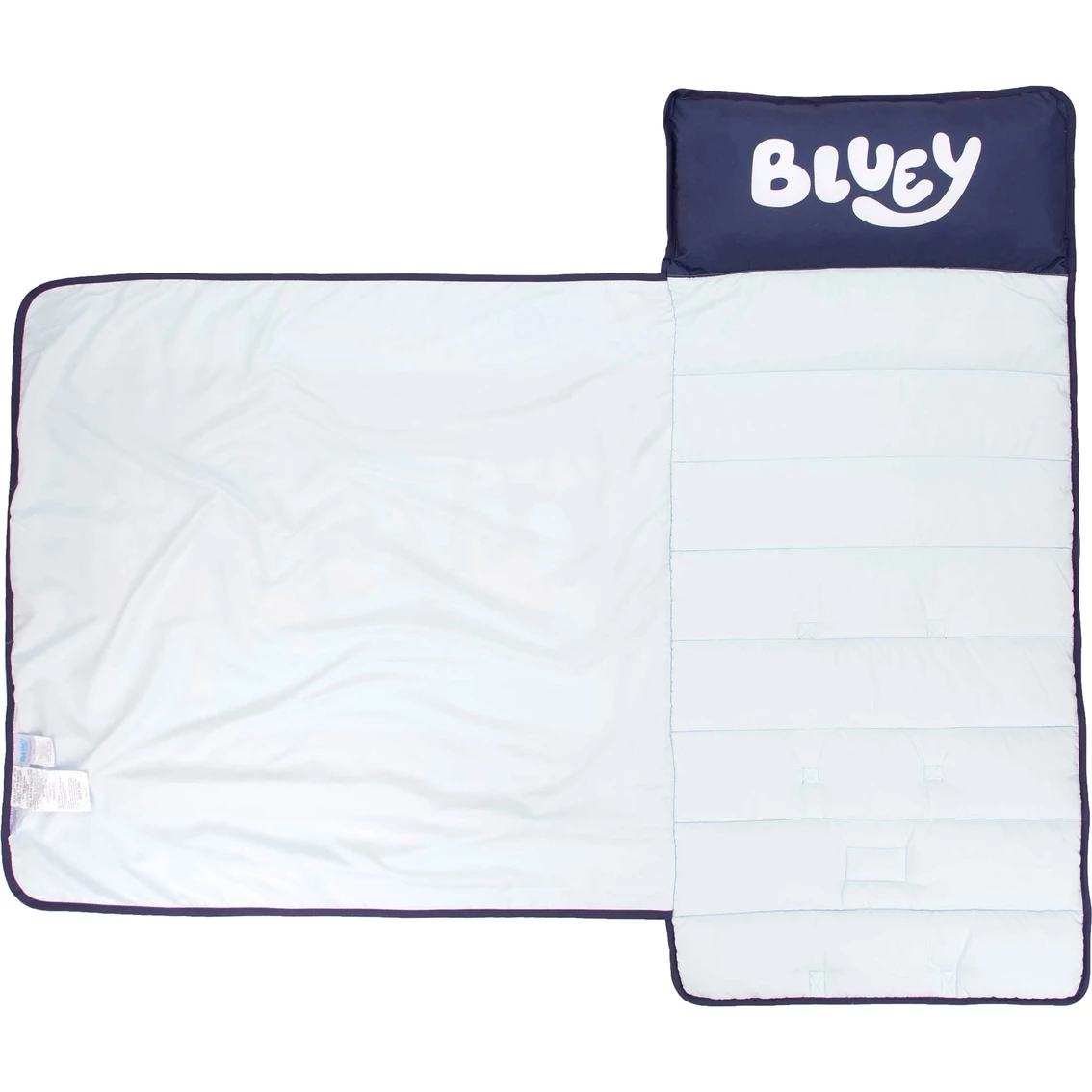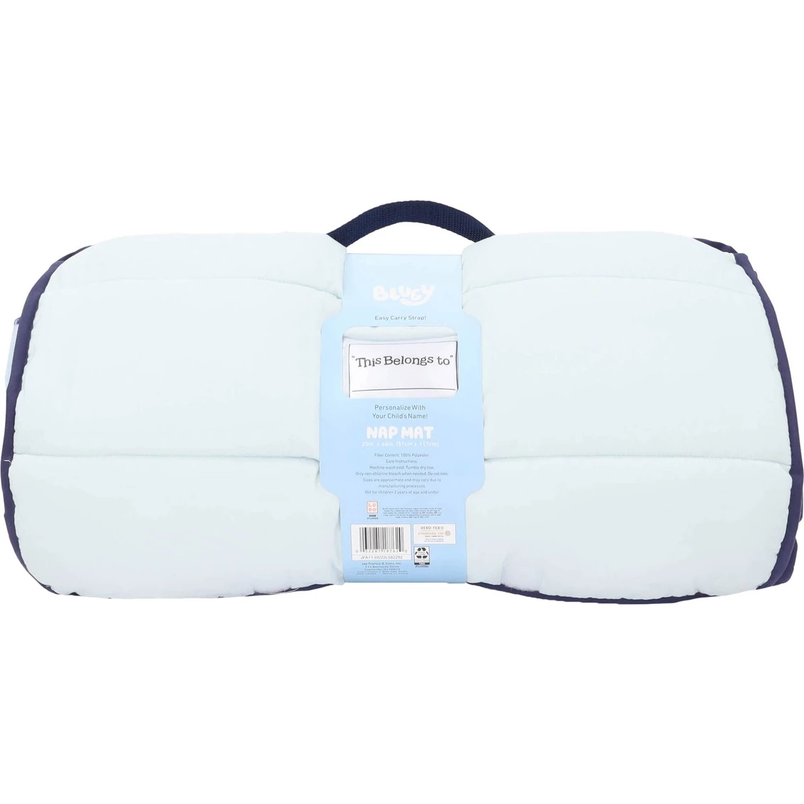 Little ones will look forward to naptime with this Bluey & Bingo nap mat. Nap mat rolls up for easy travel, plus a carrying handle and Velcro enclosure allow you to get out the door quickly. Comes with customizable name plaque with little ones. Measurements: Bluey nap mat measures 20 x 46 inches, built-in blanket measures 34 x 35 inches, and built-in pillow measures 9.5 x 20 inches. For indoor use only. Recommended for ages 3-7.