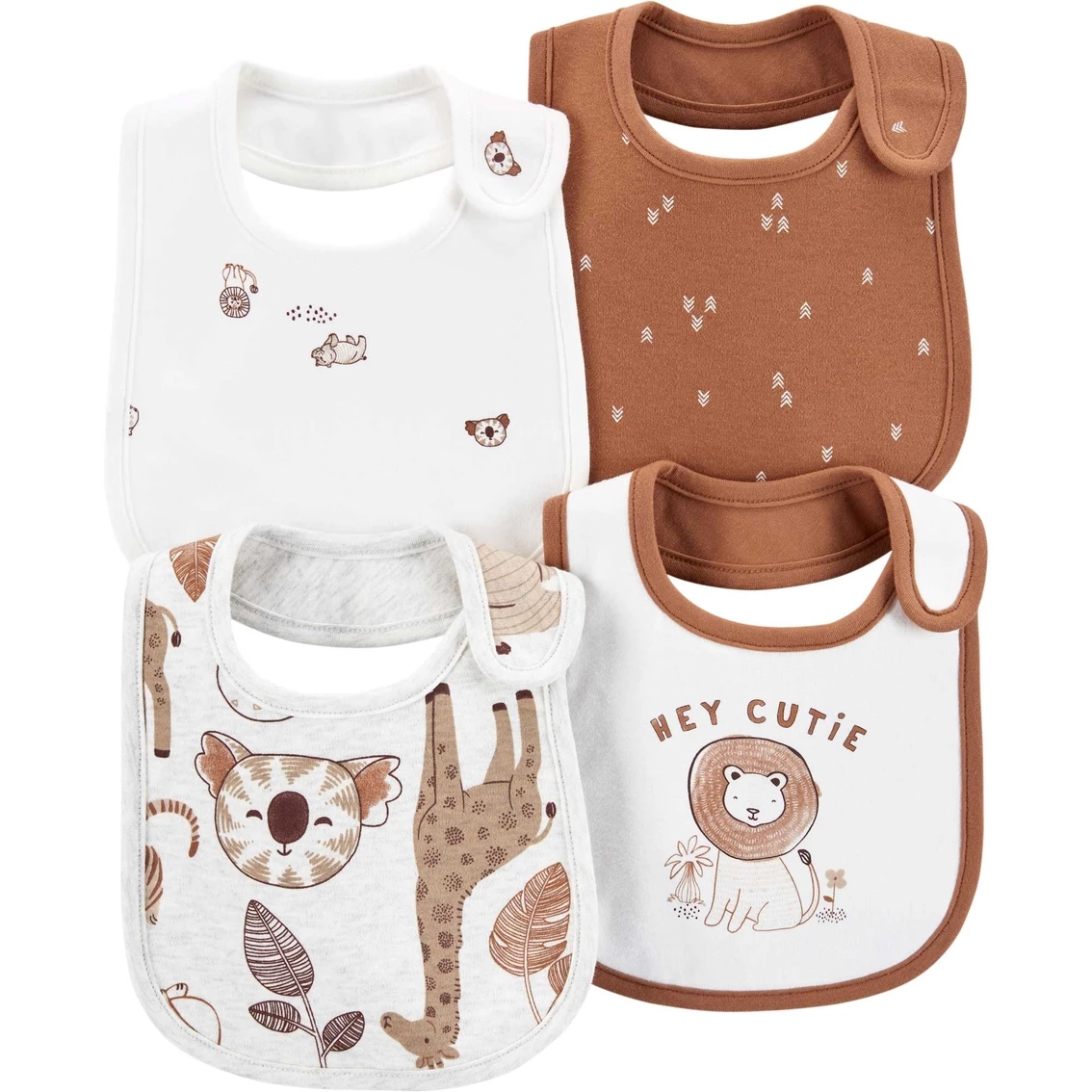 Comfortable bibs for your little baby. Fill up the diaper bag with these four hook and loo[p closure bibs. Three layer lining. Certified clean for little ones — perfect for baby. Pack of four. Machine washable. Style: 1N677410.