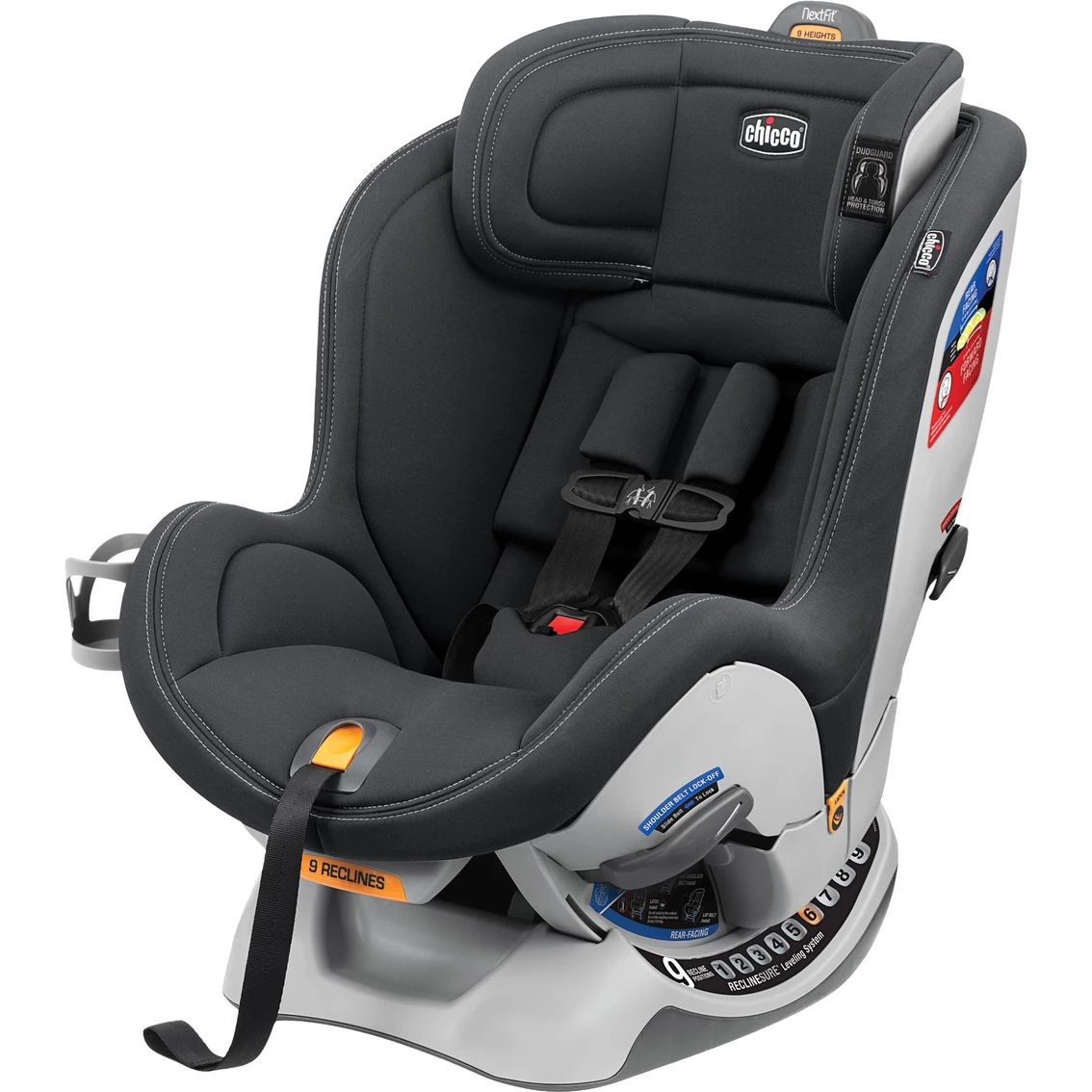The Chicco Next Fit Sport Convertible Car Seat is engineered to surround your little one in comfort and safety, all the way to preschool and beyond. Reassuringly easy installation and user-friendly touchpoints simplify travel and everyday life, making it easier for families to go and grow together. Transitions from Rear-Facing to Forward-Facing The Next Fit Sport accommodates infants and growing toddlers in rear-facing mode then transitions smoothly to forward-facing mode for older children. A nine-position headrest and padded, no-rethread harness comfortably accommodate growth throughout both modes. Easiest to Install Correctly The Next Fit Sport is designed to deliver the confidence of a secure install with remarkably simple leveling and tightening. A SuperCinch force-multiplying tightener and LockSure belt-locking system make it easy to achieve a tight fit with Latch or with the vehicle seat belt.