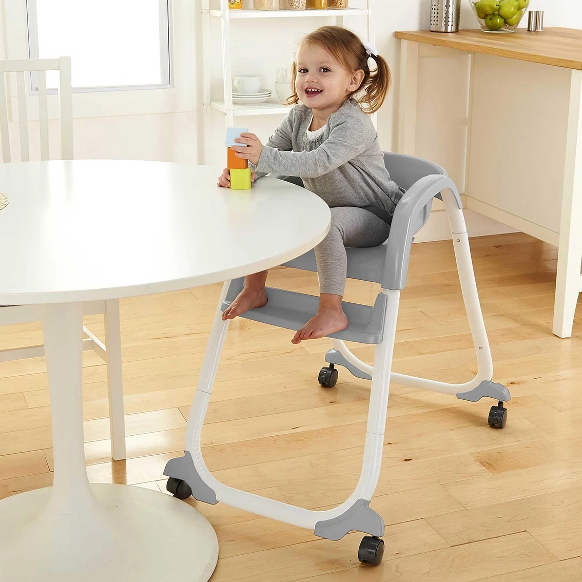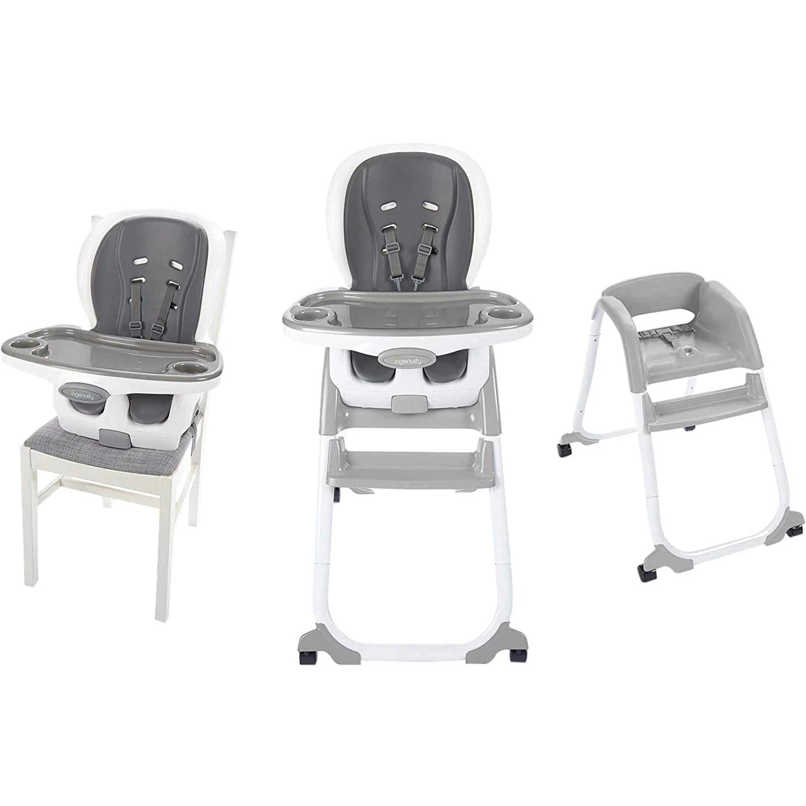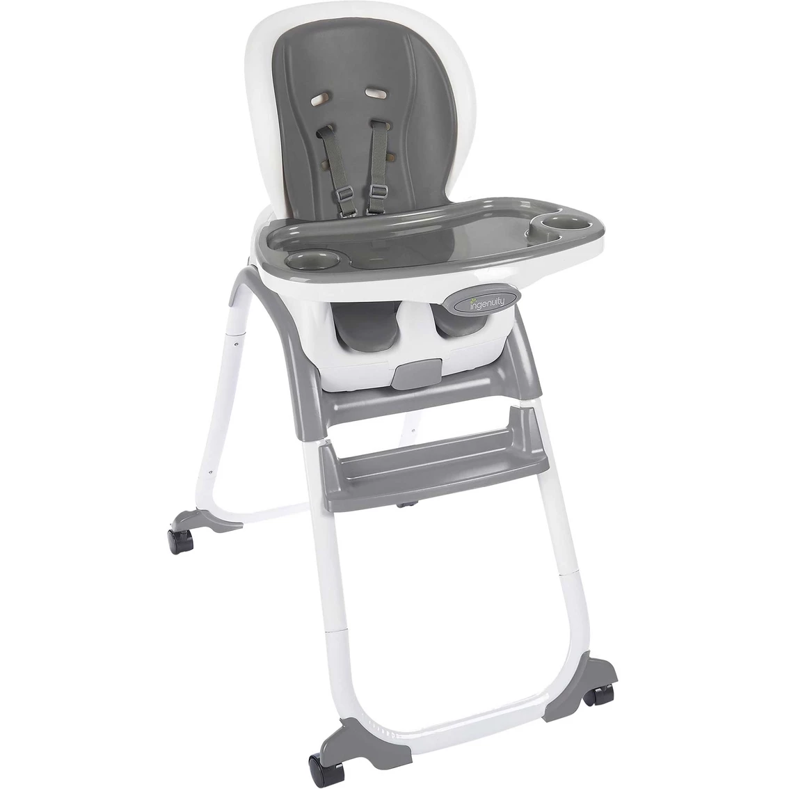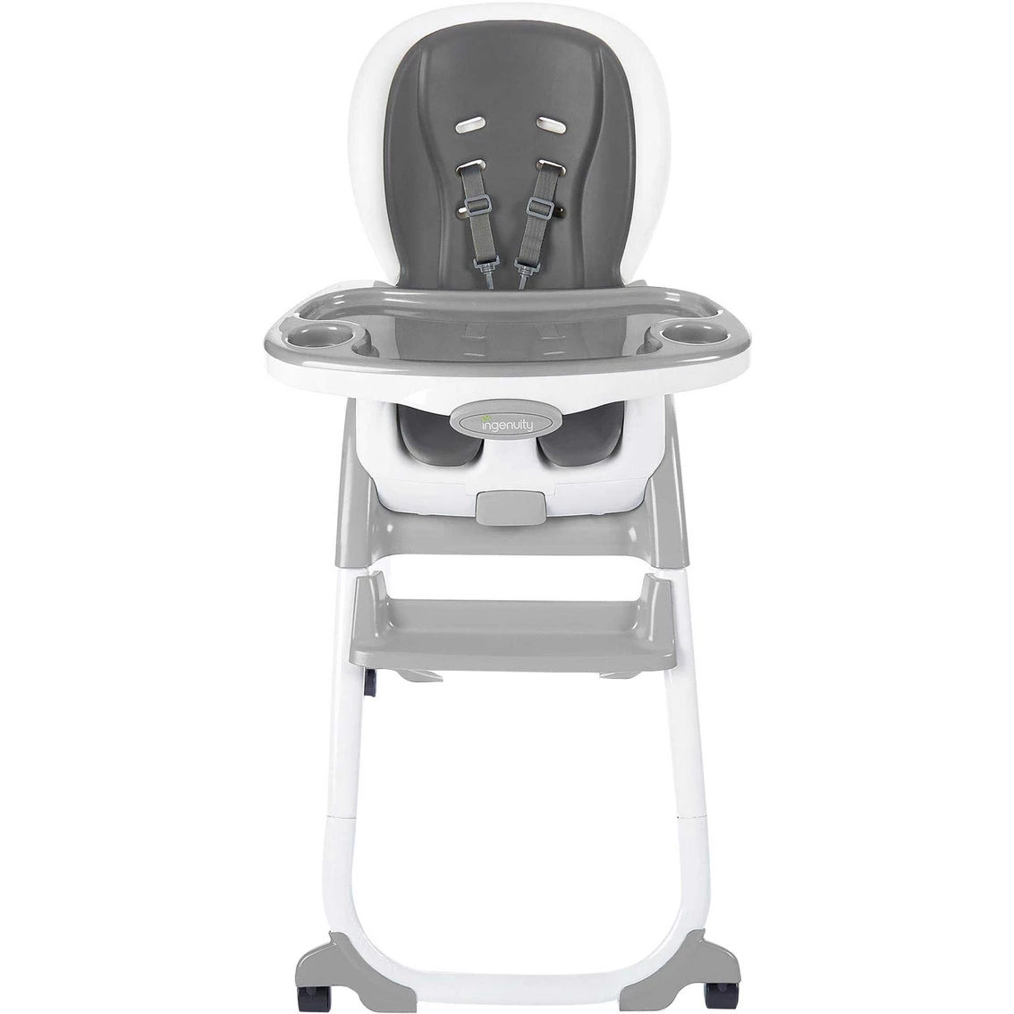 As every parent knows, kids grow up fast. The Ingenuity SmartClean Trio Elite 3-in-1 High Chair easily adjusts from full-size high chair to booster seat to toddler chair to keep up with your growing baby. The chair wipes clean instantly and is dishwasher safe, so you can slow down the clock by spending less time on kitchen cleanup and more time with your family. The dishwasher-safe EasyClean tray also features four locking positions to grow with your baby. As your family expands, it can too. When used as a booster and toddler chair, it can seat two children at the same time. Model: 11610.
