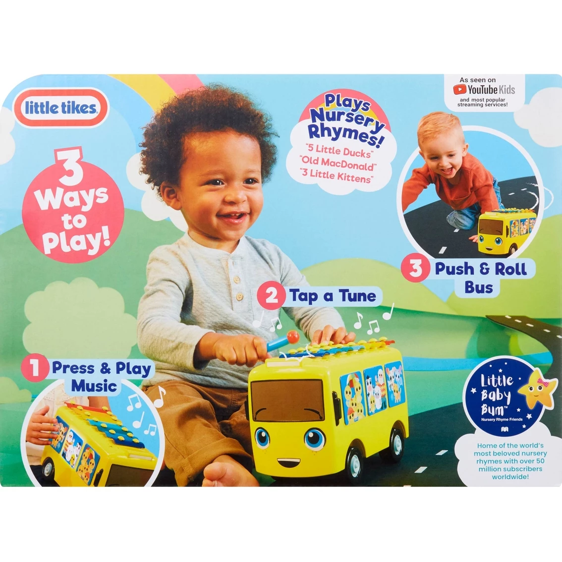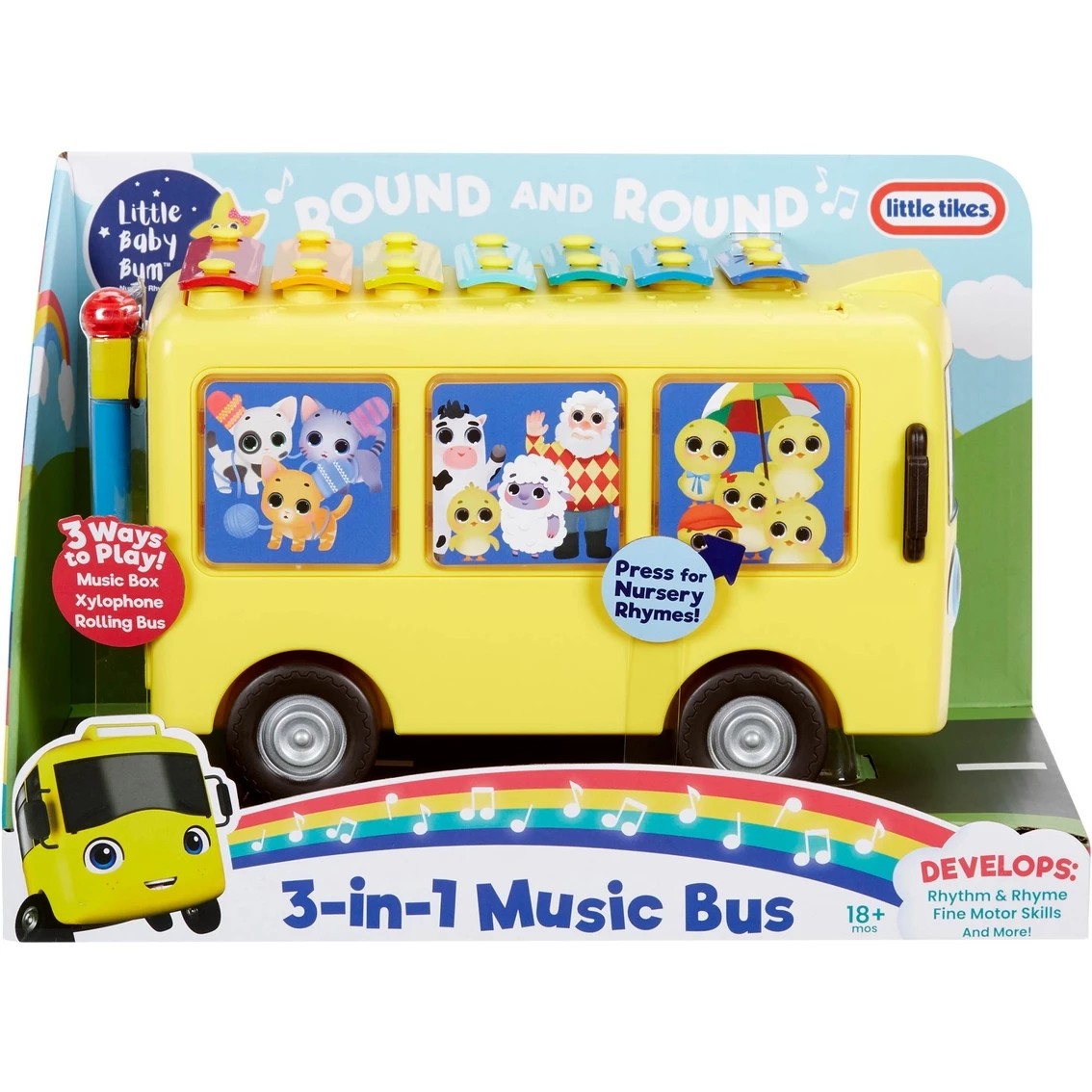 Fill your Little Baby Bum fan’s day with play with the 3-in-1 Music Bus from Little Tikes. This innovative toy is a press-and-play music box, xylophone and rolling bus all in one. Pressing on each of the 3-in-1 Music Bus’ windows plays different sounds and nursery rhymes, or kids can create their own music using the bus’ xylophone roof and included mallet. Kids can also role play their favorite Little Baby Bum stories as they roll the 3-in-1 Music Bus around. Best of all, the 3-in-1 Music Bus helps kids develop their fine motor skills, rhythm and rhyme and more preschool skills. Play and learn together with Little Baby Bum and Little Tikes.