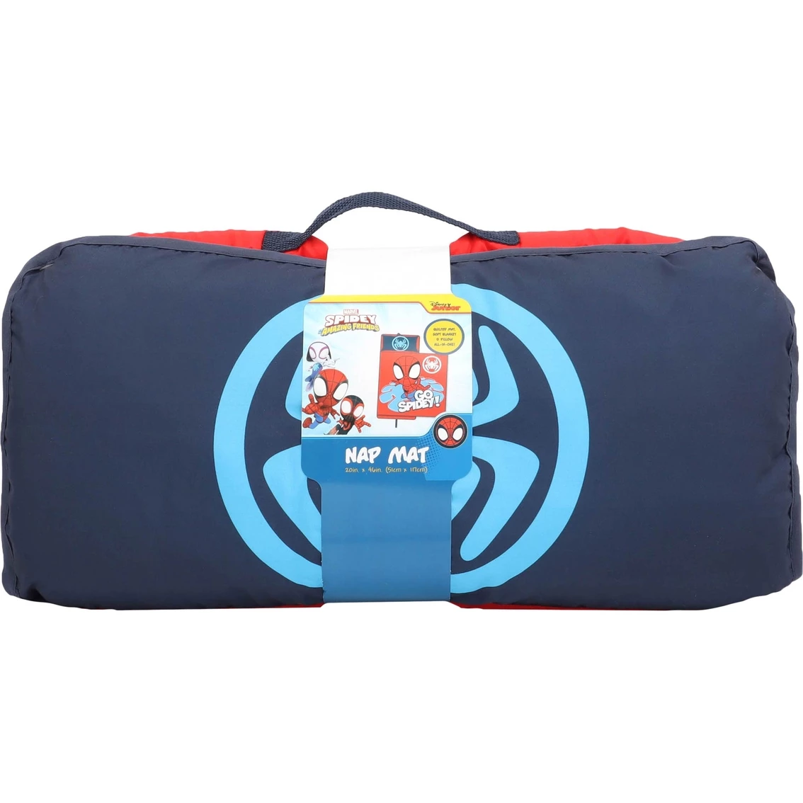 Make every child’s nap time fun with this Marvel Spidey and Friends Nap Mat. Complete with a built-in, attached blanket cover and filled pillow, this nap mat is an all-in-one cozy and comfy nap time solution at home or on the go. Perfect for daycare or preschool, this nap mat’s bold and colorful design will take nap time to another level. Simply un-roll this easy-to-use sleeping bag style nap mat and your child is ready for some quiet time.