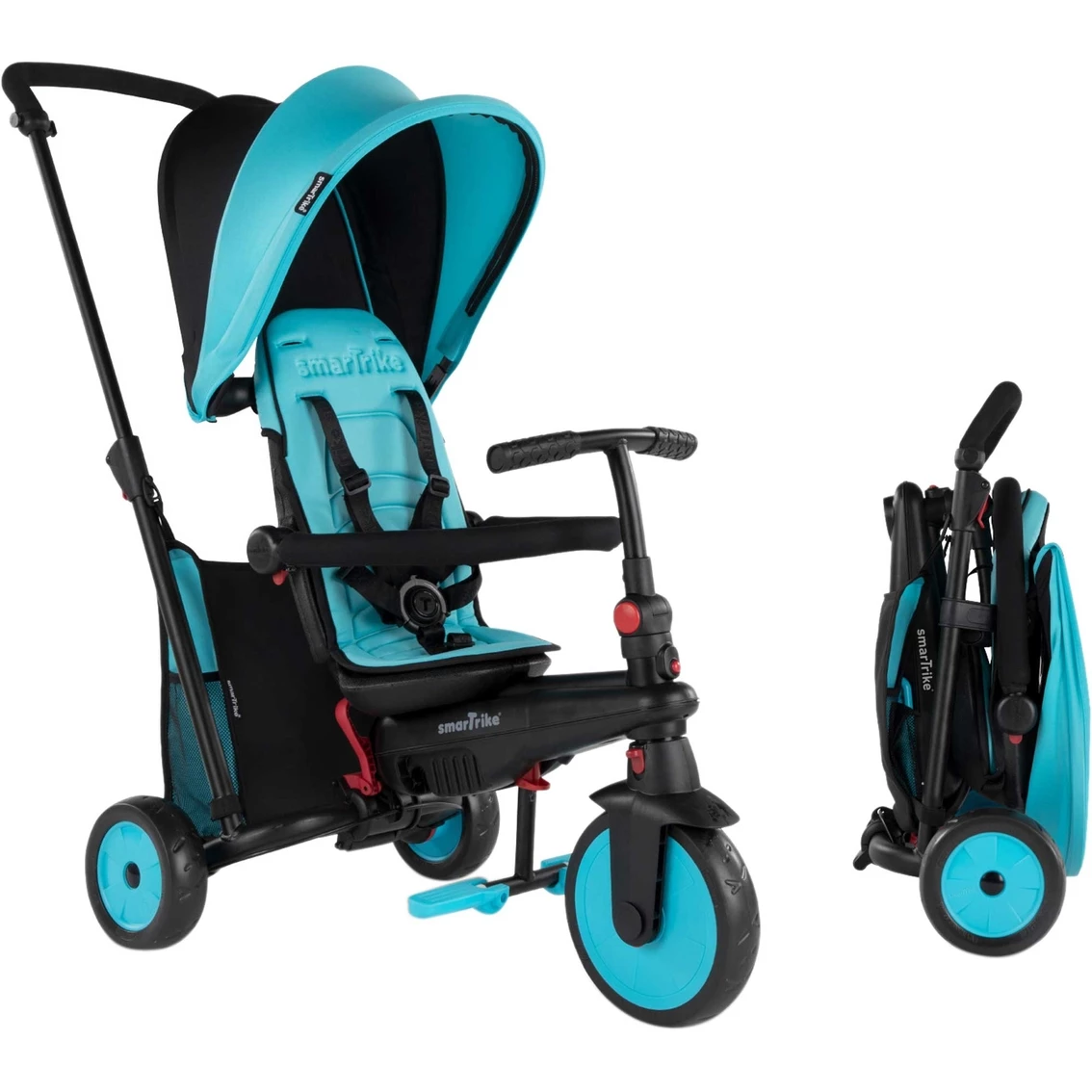 The STR3 is a stroller certified trike that is bright and fun to use! Features a 5-point harness, one Touch Steering & compact folding patents. A popular choice for families on the go. Easy to steer and fun to ride, kids and parents alike love it. Easy transformation from stroller to trike. Patented Touch Steering offers smooth maneuvering. Easy Parent to Child Control switch. Grows with your child in 7 stages to match their age and skill. Compact and fully folding, ideal for stress-free travel and storage. No assembly. Patented shock absorption.