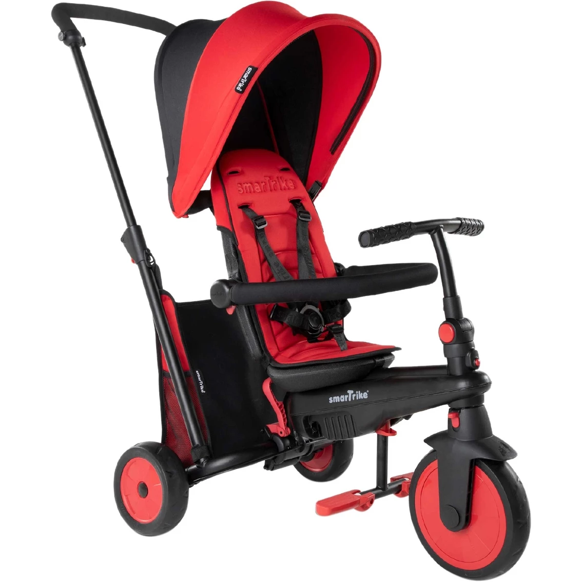 The STR3 is a stroller certified trike that is bright and fun to use! Features a 5-point harness, one Touch Steering & compact folding patents. A popular choice for families on the go. Easy to steer and fun to ride, kids and parents alike love it. Easy transformation from stroller to trike. Patented Touch Steering offers smooth maneuvering. Easy Parent to Child Control switch. Grows with your child in 7 stages to match their age and skill. Compact and fully folding, ideal for stress-free travel and storage. No assembly. Patented shock absorption.